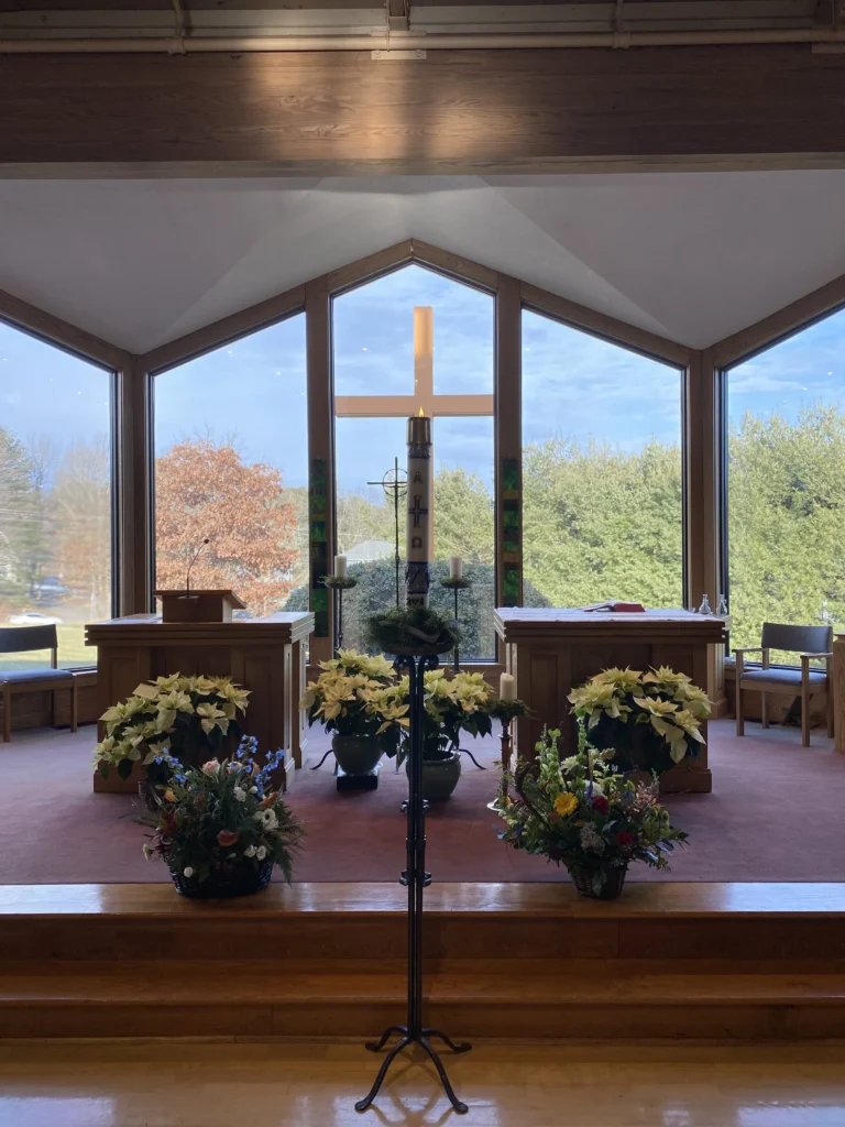 The building of the parish worship space proved to be as unique as the leadership and founding of the community. While masses and sacraments were celebrated at “Saint Wiremold” (as it was known for three-and-half years), parish members and friends were busy days, nights and weekends literally building the church structure with their own hands. The new building at 280 Brook Street was situated on 8 ½ acres of land purchased with funds from Saint James Church; and the structure was built with the assistance of the Archdiocese of Hartford. Modeled in part on Vermont’s Weston Priory, a large open room with exposed trusses was enhanced by floor-to-ceiling windows in the sanctuary enabling splendid views of God’s creation. A large, plain rugged cross stands behind the windows. One main entrance reinforced the feeling of unity and collaboration. Parishioners of all ages and abilities worked side-by-side to provide oversight, labor and logistical support and were able to complete the structure which also includes offices and classrooms as well as a kitchen and hospitality area.