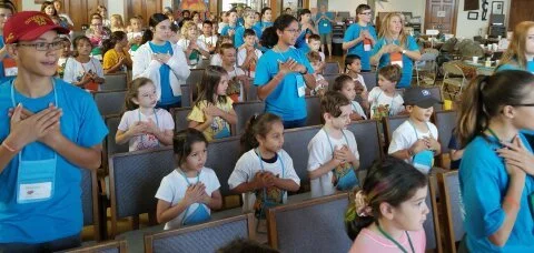 Parishioners organize an annual, intergenerational, week-long summer bible camp for children in grades 1-6.